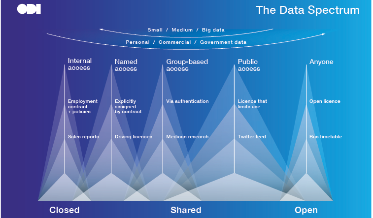 Some now argue for a more nuanced approach to “open”. For example, the Open Data Institute (ODI) proposes a spectrum of openness with different levels of access to data depending upon its nature, the identity of the user, and the proposed use (see Figure 2, overleaf).