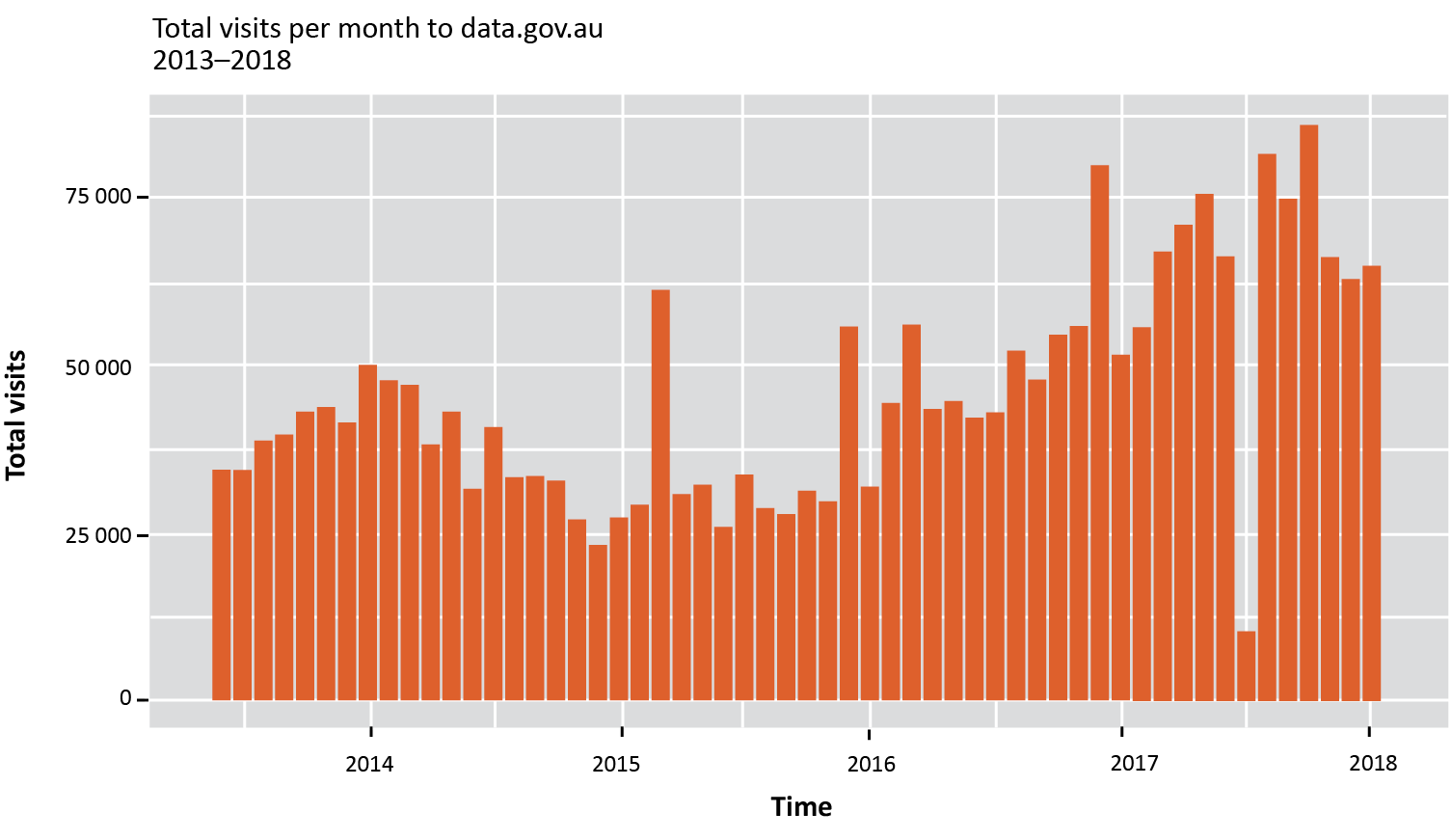 Figure 2: Monthly visits to data.gov (2014–2017)